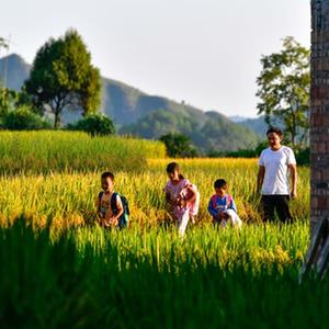 路在山腰盤(pán)旋,海拔逐漸上升。到了山間,一塊平地豁然開(kāi)朗,梯田層疊,稻谷金黃,巖腳教學(xué)點(diǎn)出現在眼前。