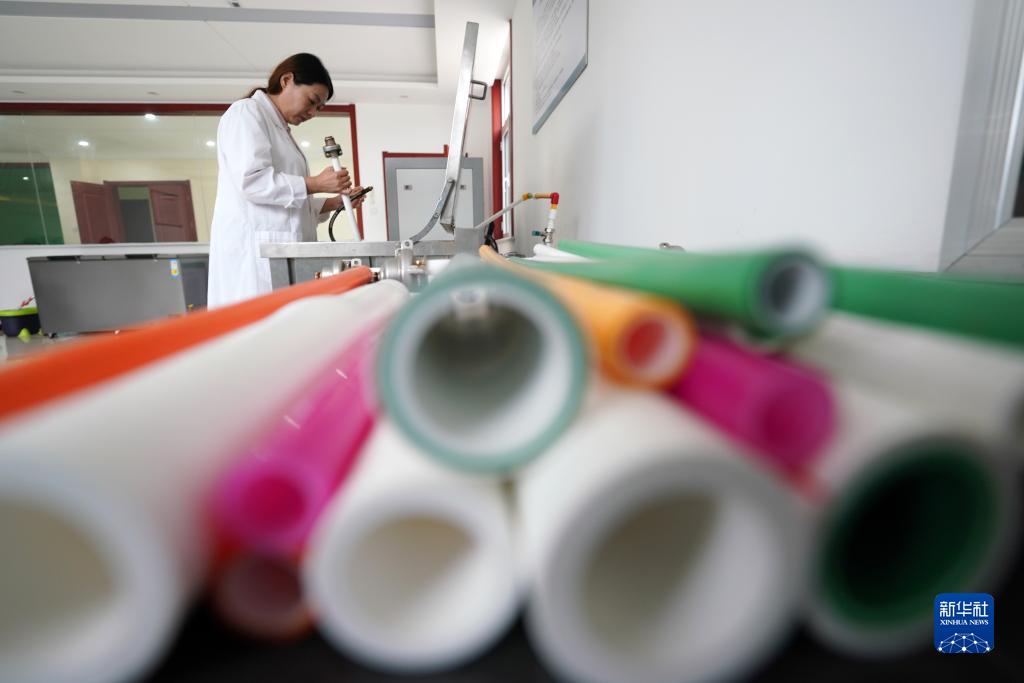 9月10日,河北省柏鄉縣一家管材生產(chǎn)科技型企業(yè)的研發(fā)人員在實(shí)驗室工作。