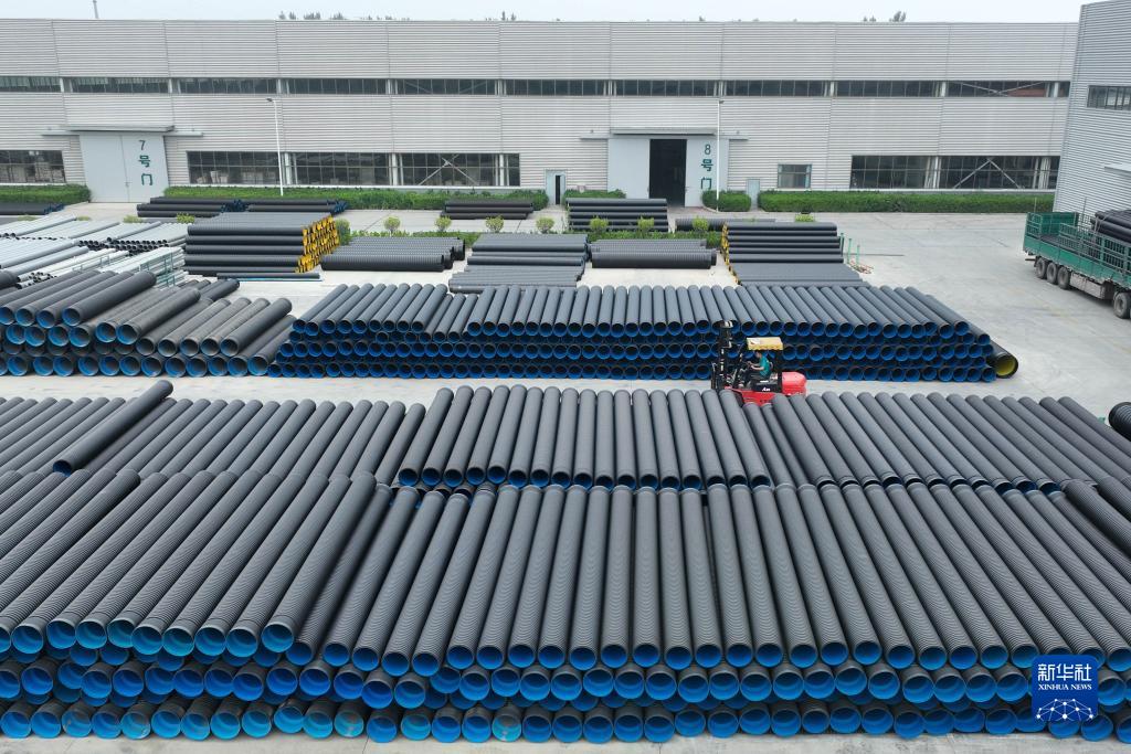 9月10日,河北省柏鄉縣一家管材生產(chǎn)科技型企業(yè)的工人在運輸產(chǎn)品(無(wú)人機照片)。