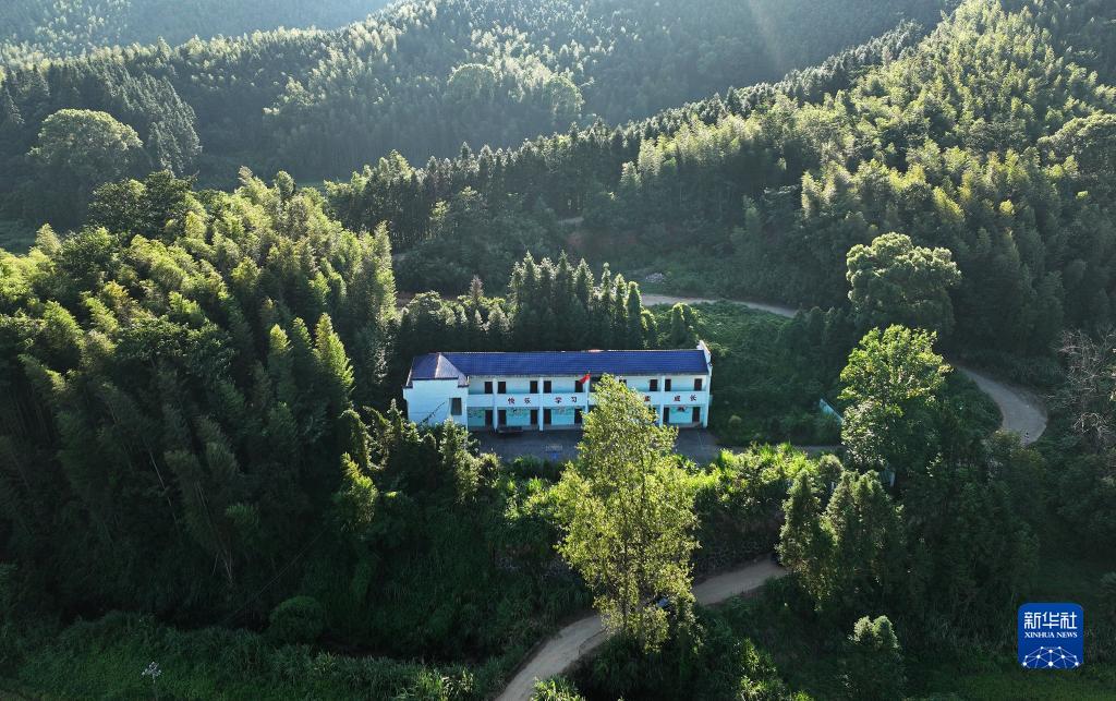 山林環(huán)抱的江西省高安市華林山鎮中心小學(xué)朱家教學(xué)點(diǎn)(9月4日攝,無(wú)人機照片)。
