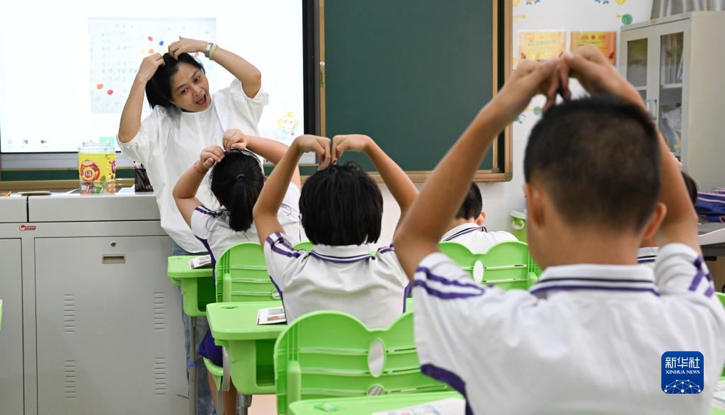 在海南(??冢┨厥饨逃龑W(xué)校啟智三(1)班,班主任符堯惠為學(xué)生們上課(9月5日攝)。