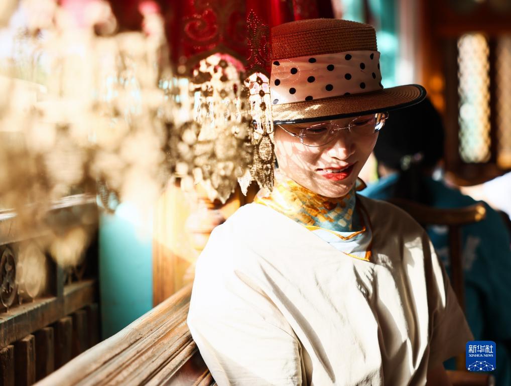 游客在新疆喀什古城景區百年老茶館內小憩(9月7日攝)。