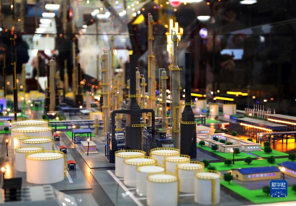 這是9月10日在伊拉克首都巴格達國際會(huì )展中心舉行的首屆伊拉克石油項目和許可招標國際會(huì )議暨展覽會(huì )上拍攝的石化設備模型。