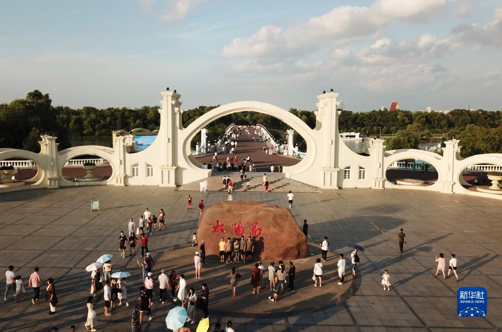 這是7月31日拍攝的太陽(yáng)島景區的太陽(yáng)石廣場(chǎng)(無(wú)人機照片)。