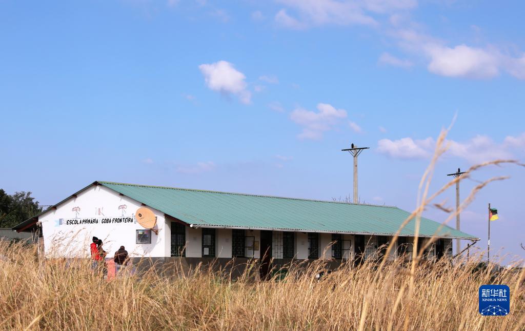 這是7月26日在莫桑比克馬普托省戈巴弗龍泰拉村拍攝的裝有中國援助的衛星電視接收天線(xiàn)的學(xué)校。