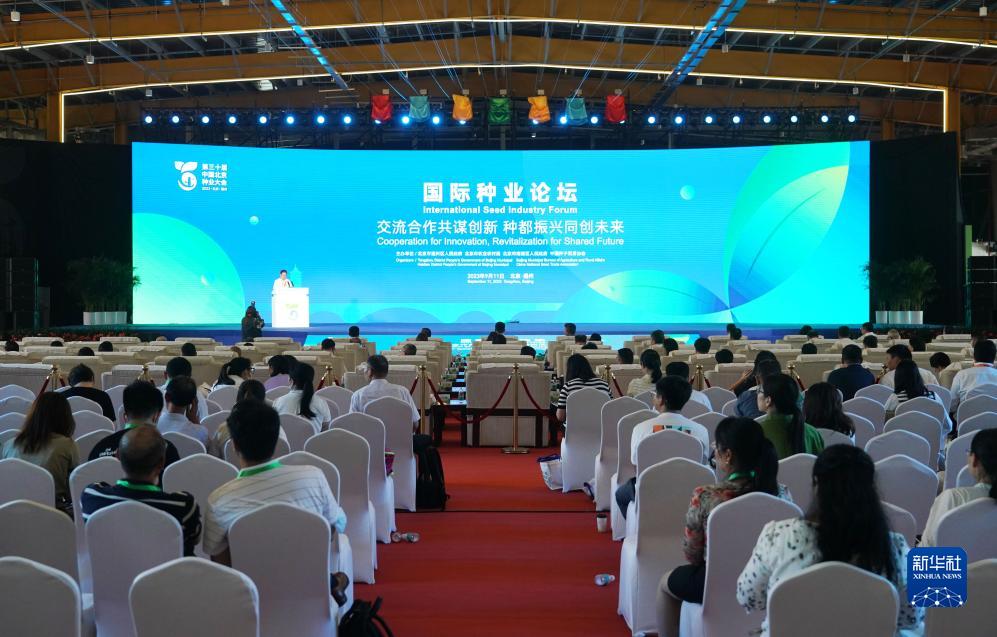 9月11日拍攝的第三十屆中國北京種業(yè)大會(huì )國際種業(yè)論壇現場(chǎng)。