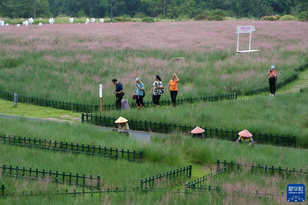9月11日,游客在廣西南寧市園博園觀(guān)賞粉黛亂子草。