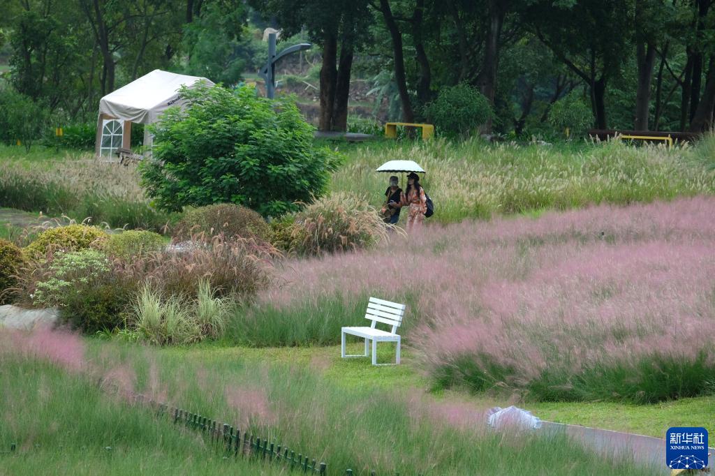 9月11日,游客在廣西南寧市園博園觀(guān)賞粉黛亂子草。