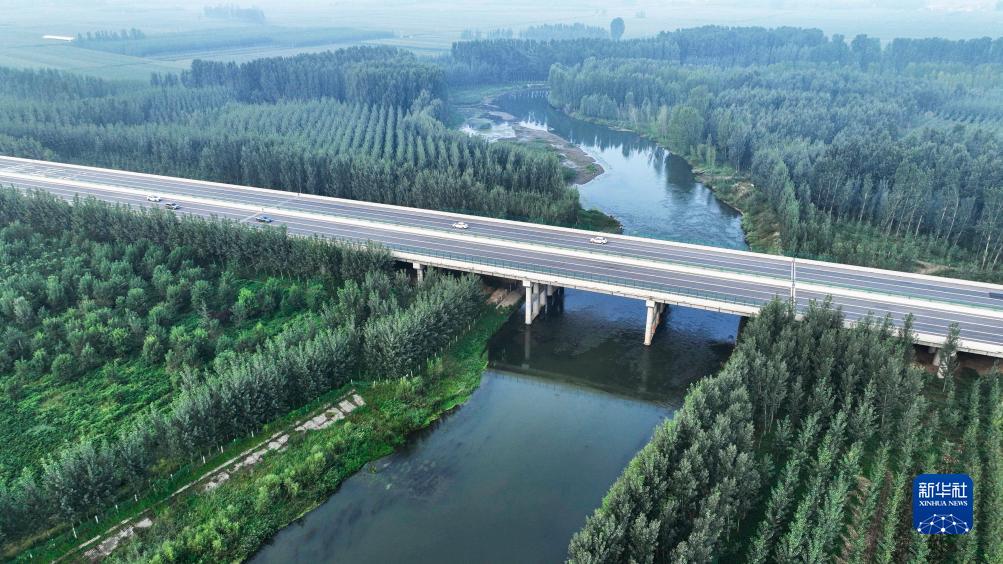 9月11日在河北省遵化市拍攝的引灤入津工程重要輸水河道黎河(無(wú)人機照片)。