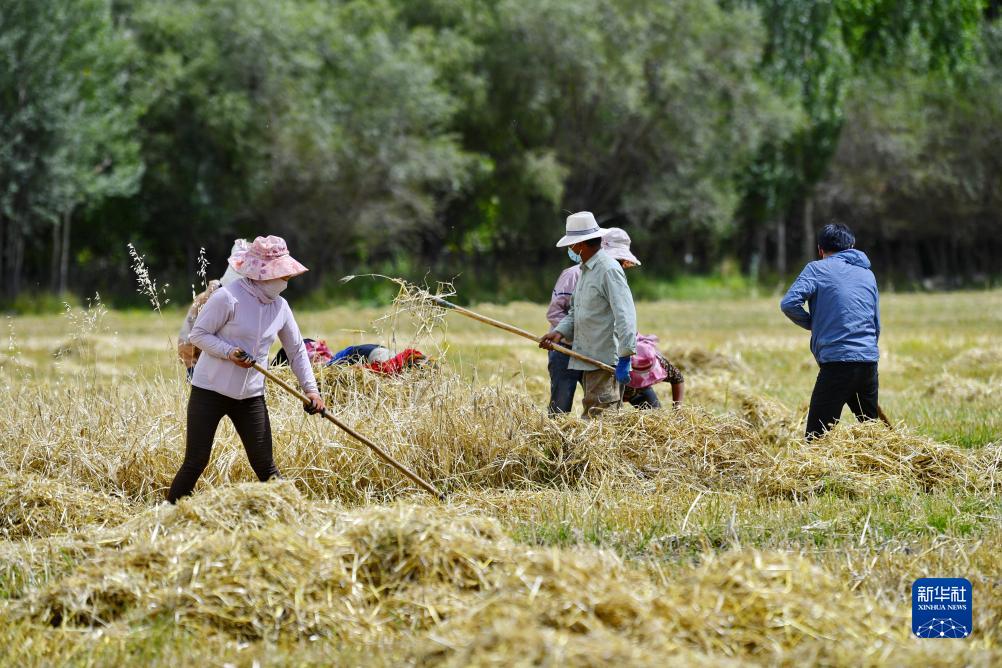 近日,西藏拉薩市曲水縣青稞成熟,人們忙著(zhù)收割青稞,感受豐收的喜悅。