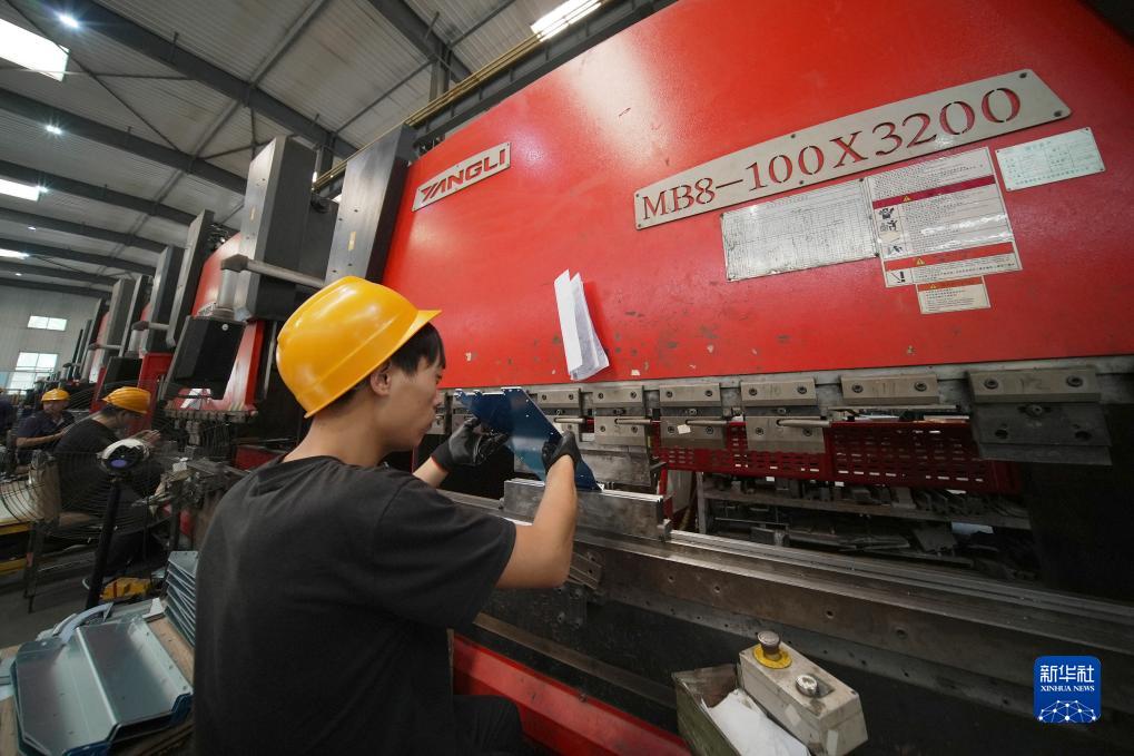 9月12日,工作人員在滄州惠邦機電產(chǎn)品制造有限公司生產(chǎn)車(chē)間加工機箱部件。