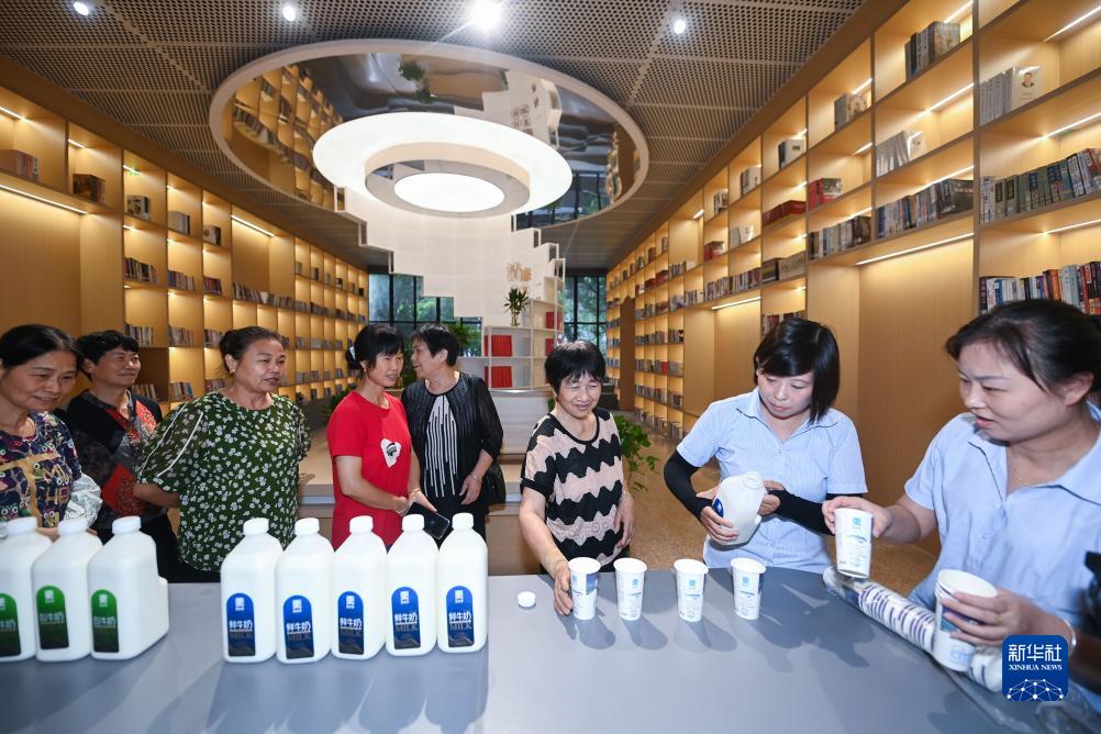 9月12日,建德市更樓街道更化社區的居民在鮮奶共富工坊的書(shū)吧內品嘗剛生產(chǎn)出來(lái)的鮮奶。