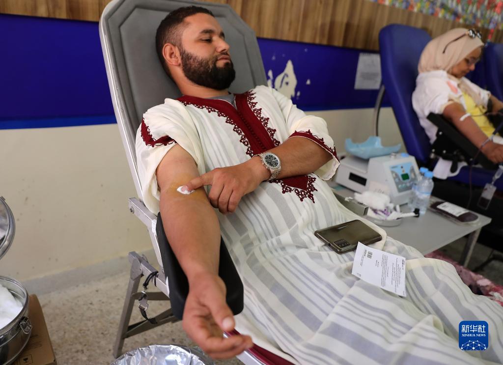 9月12日,民眾在摩洛哥馬拉喀什一家血液捐獻中心獻血。