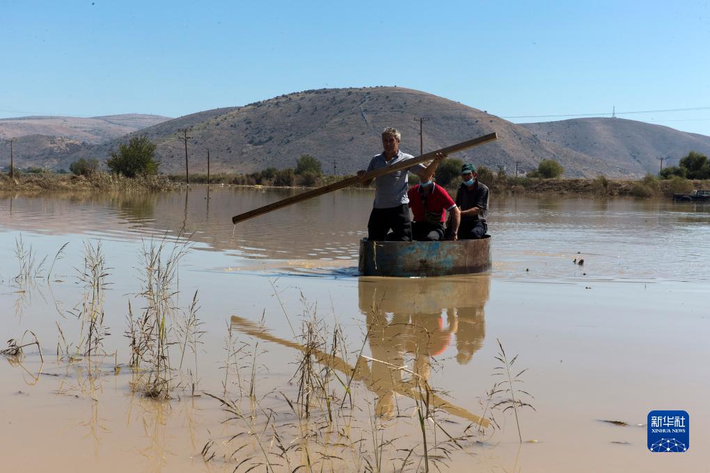 9月12日,人們在希臘中部卡爾季察地區的一處村莊乘船出行。