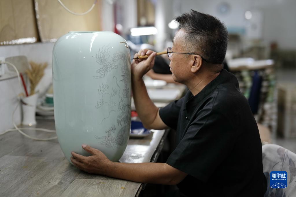 9月12日,戴佩維在進(jìn)行陶瓷雕金創(chuàng )作。