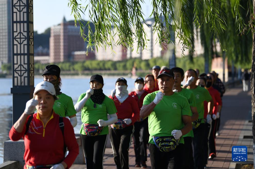 9月13日,市民在承德市雙橋區一處“口袋公園”鍛煉。