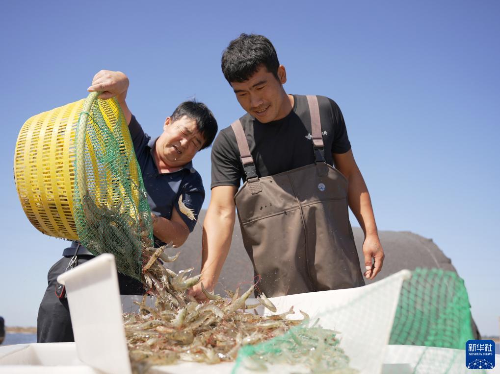 金秋時(shí)節,在河北省滄州市海興縣鹽堿灘涂養殖池,養殖戶(hù)正忙著(zhù)捕撈對蝦,一派繁忙景象。海興縣地處渤海之濱,土地鹽堿化嚴重,種植效益差。近年來(lái),當地依托鹽堿灘涂搞起了特色水產(chǎn)規?;B殖,打造“藍色糧倉”,目前已成為海興縣主導產(chǎn)業(yè)之一。