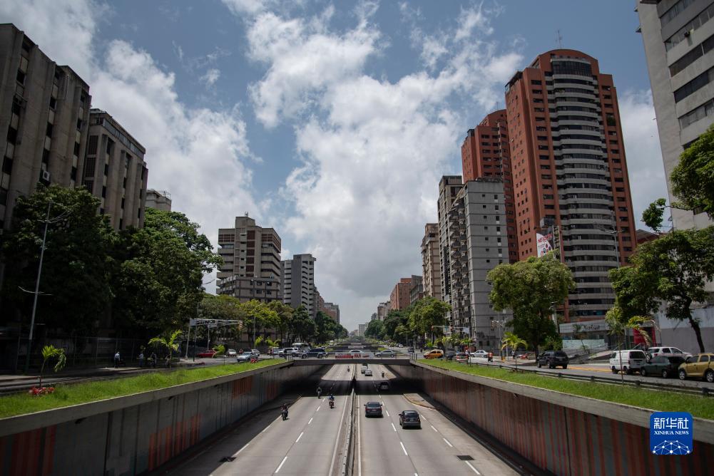 2021年7月20日,車(chē)輛在委內瑞拉首都加拉加斯市中心主干道解放者大道上行駛。