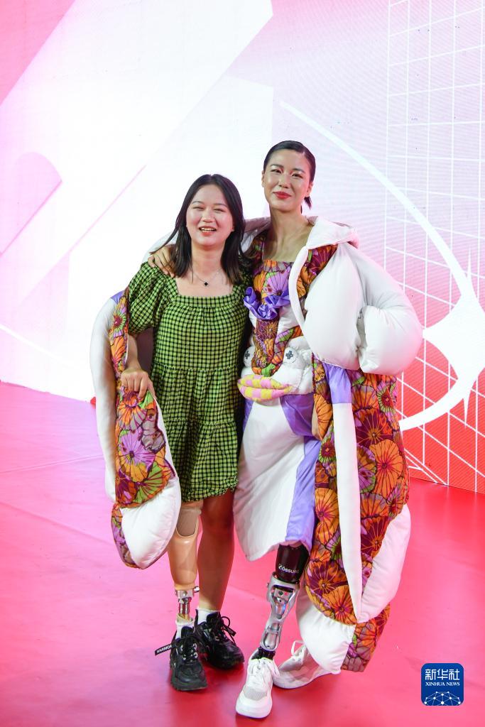 在四川師范大學(xué)服裝與設計藝術(shù)學(xué)院2023優(yōu)秀畢業(yè)作品發(fā)布會(huì )后,胡月和好友合影(5月27日攝)。新華社記者 唐文豪 攝