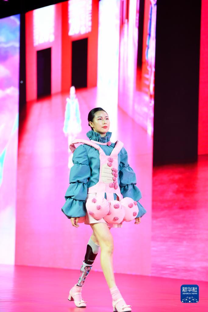 胡月在四川師范大學(xué)服裝與設計藝術(shù)學(xué)院2023優(yōu)秀畢業(yè)作品發(fā)布會(huì )上走秀(5月27日攝)。新華社記者 唐文豪 攝