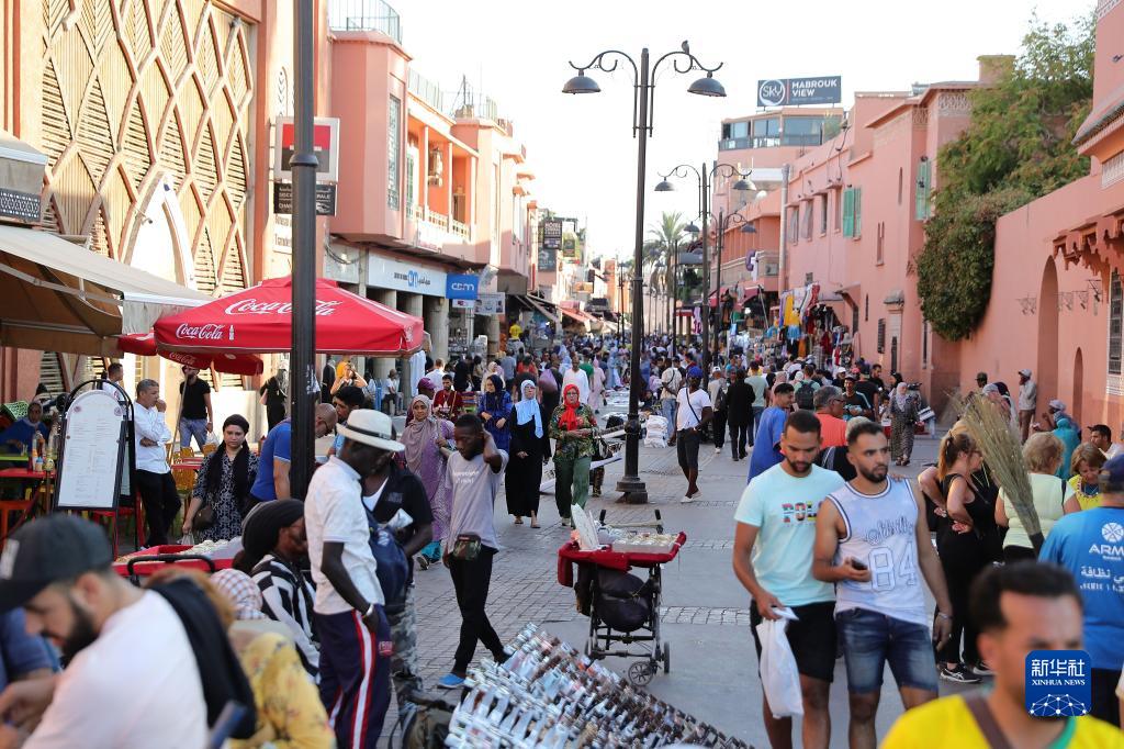 9月13日,人們走在摩洛哥馬拉喀什老城的街道上。