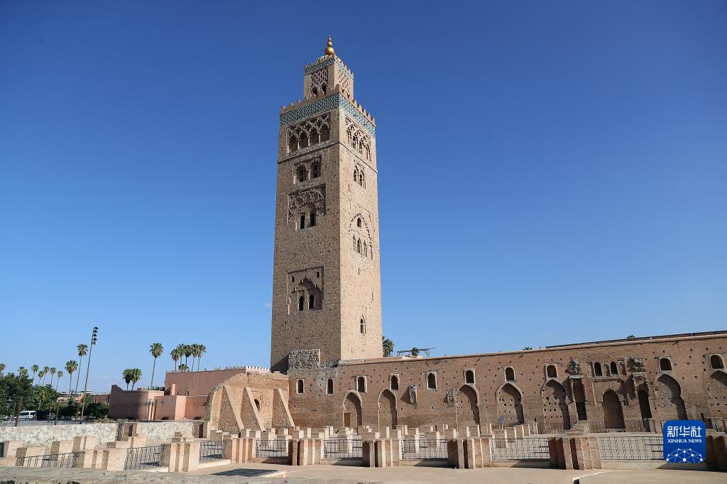 這是9月13日在摩洛哥馬拉喀什老城拍攝的庫圖比亞清真寺。該清真寺目前已暫停開(kāi)放。