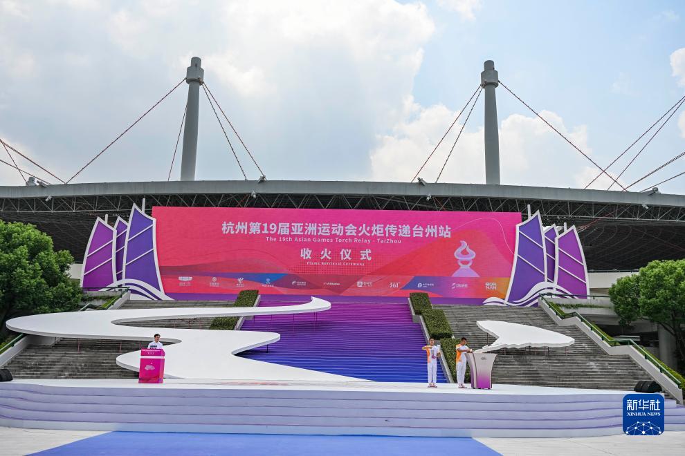 這是杭州亞運會(huì )火炬傳遞臺州站收火儀式現場(chǎng)(9月14日攝)。