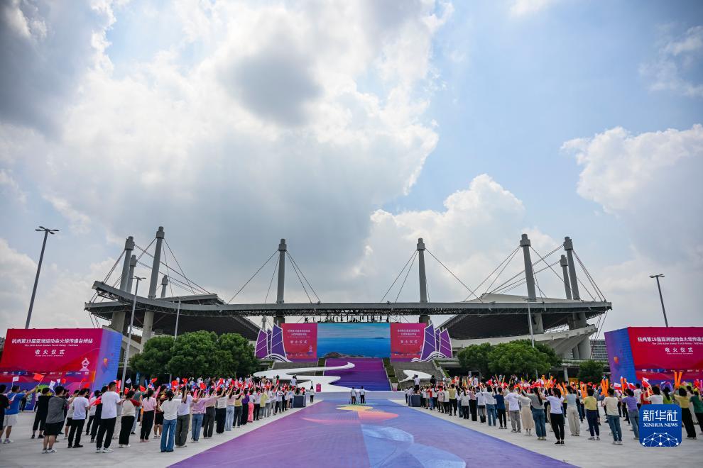 這是杭州亞運會(huì )火炬傳遞臺州站收火儀式現場(chǎng)(9月14日攝)。