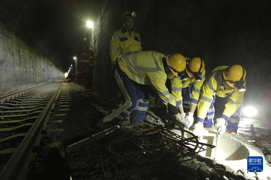 9月13日,在大興安嶺地區白卡爾隧道,中國鐵路哈爾濱局集團有限公司加格達奇工務(wù)段的鐵路工人準備下井,檢查排水系統的暢通情況。