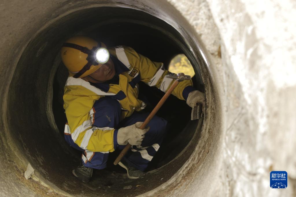 9月13日,中國鐵路哈爾濱局集團有限公司加格達奇工務(wù)段的鐵路工人在大興安嶺地區嫩林線(xiàn)路基涵洞進(jìn)行設備檢查工作。