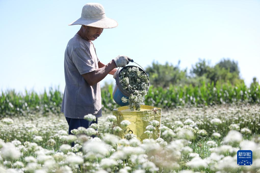 眼下正值韭花成熟上市的季節,山東省淄博市高青縣的農民們忙著(zhù)采收韭花,供應市場(chǎng)。