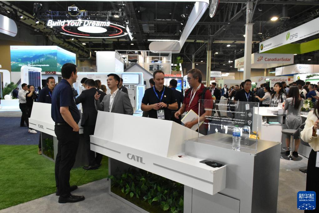 9月12日,人們在美國拉斯維加斯舉行的北美最大清潔能源展會(huì )RE+展會(huì )上參觀(guān)中國企業(yè)寧德時(shí)代展區。