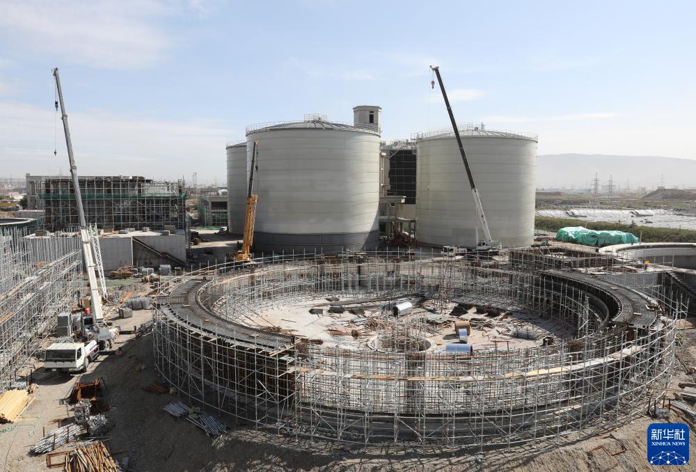 這是9月13日在蒙古國首都烏蘭巴托附近拍攝的正在建設中的烏蘭巴托中央污水處理廠(chǎng)。