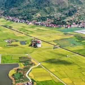 這是9月14日拍攝的廟宇鎮稻田(無(wú)人機照片)。