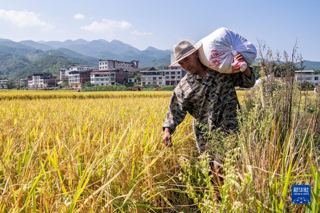 金秋時(shí)節,重慶市巫山縣廟宇鎮稻谷陸續進(jìn)入成熟收割期,稻農們搶抓晴好天氣,收割水稻。