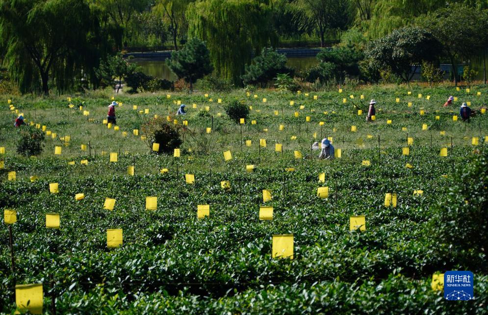 9月14日,在山東省諸城市桃林鎮,茶農在茶園里采摘秋茶。