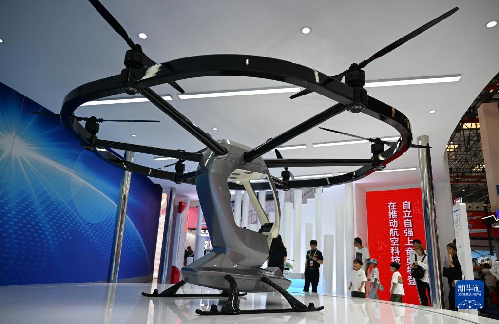 9月14日,參展人員在第六屆中國天津國際直升機博覽會(huì )會(huì )場(chǎng)參觀(guān)AR-300(旋戈-300)飛行器。