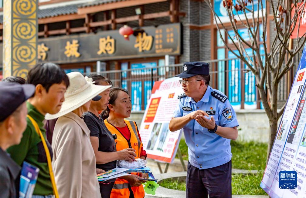 9月14日,民警在貴州省黔西市錦繡街道的廣場(chǎng)上向人們講解網(wǎng)絡(luò )安全知識。