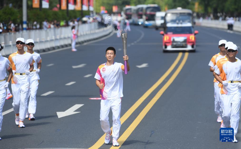 9月15日,火炬手王俊杰在火炬傳遞中。