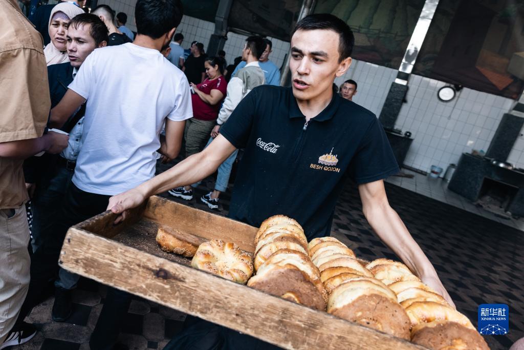 9月14日,在烏茲別克斯坦首都塔什干,工作人員運送面包。