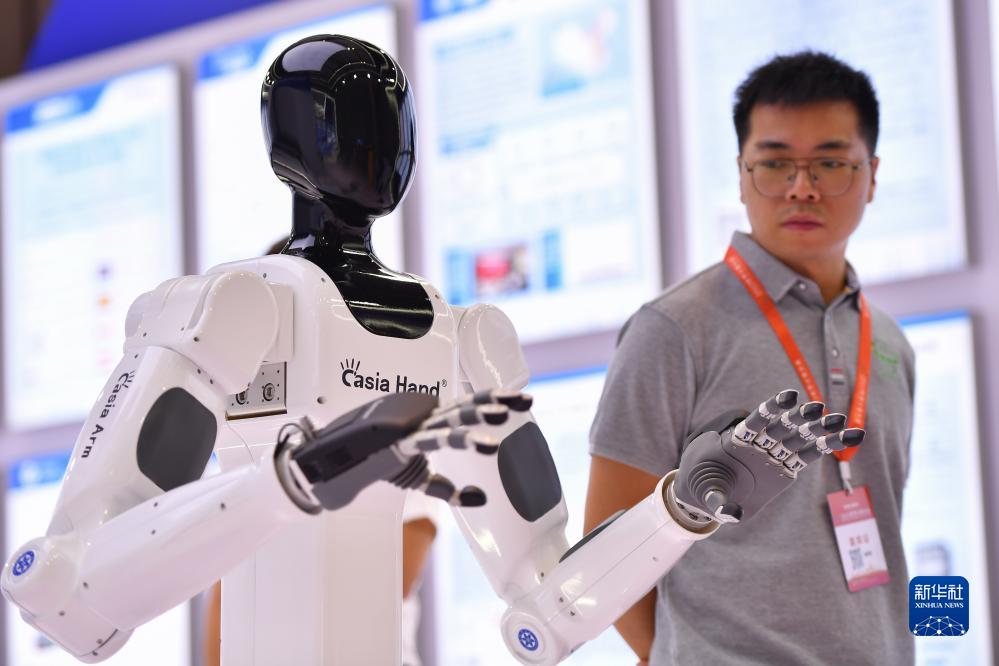 9月15日,參觀(guān)者在2023世界計算大會(huì )專(zhuān)題展上參觀(guān)服務(wù)機器人。