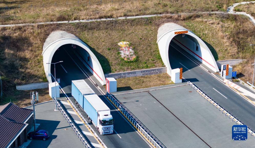 9月13日,在塞爾維亞利格附近,車(chē)輛通過(guò)由中企承建的塞爾維亞E763高速公路路段隧道。