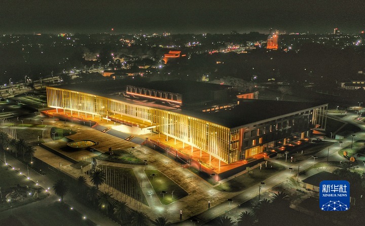 這是2022年5月26日在贊比亞首都盧薩卡拍攝的中國政府援建的贊比亞國際會(huì )議中心(航拍照片)。