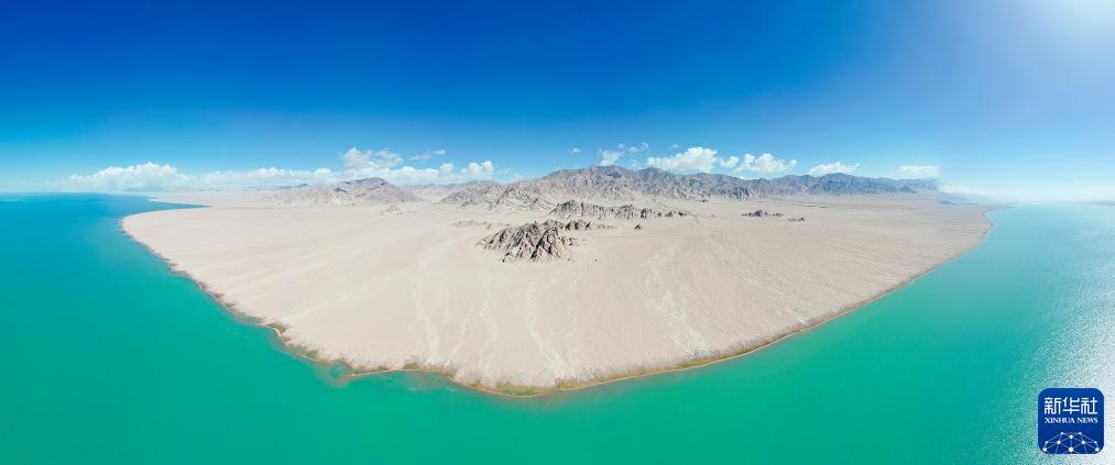 9月11日在阿爾金山國家級自然保護區拍攝的阿雅克庫木湖及周邊群山(無(wú)人機全景照片)。