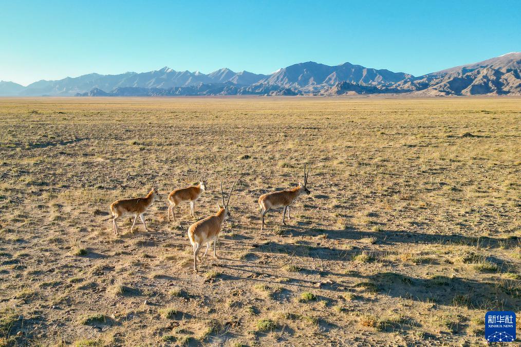 9月12日在阿爾金山國家級自然保護區拍攝的藏羚(無(wú)人機照片)。