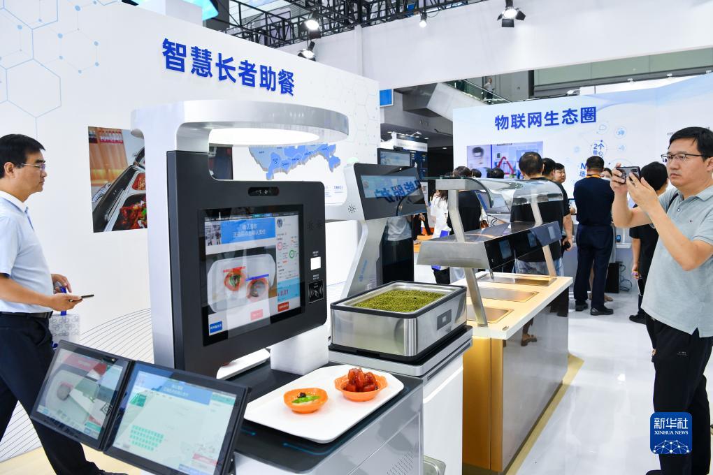 9月15日,觀(guān)眾在深圳智慧養老展上了解智慧長(cháng)者助餐系統。