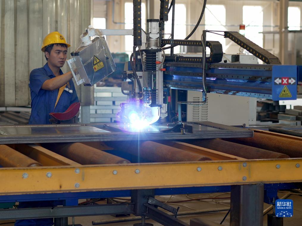 9月15日,工作人員在河北科源智能電氣有限公司生產(chǎn)車(chē)間操控設備進(jìn)行自動(dòng)焊接作業(yè)。