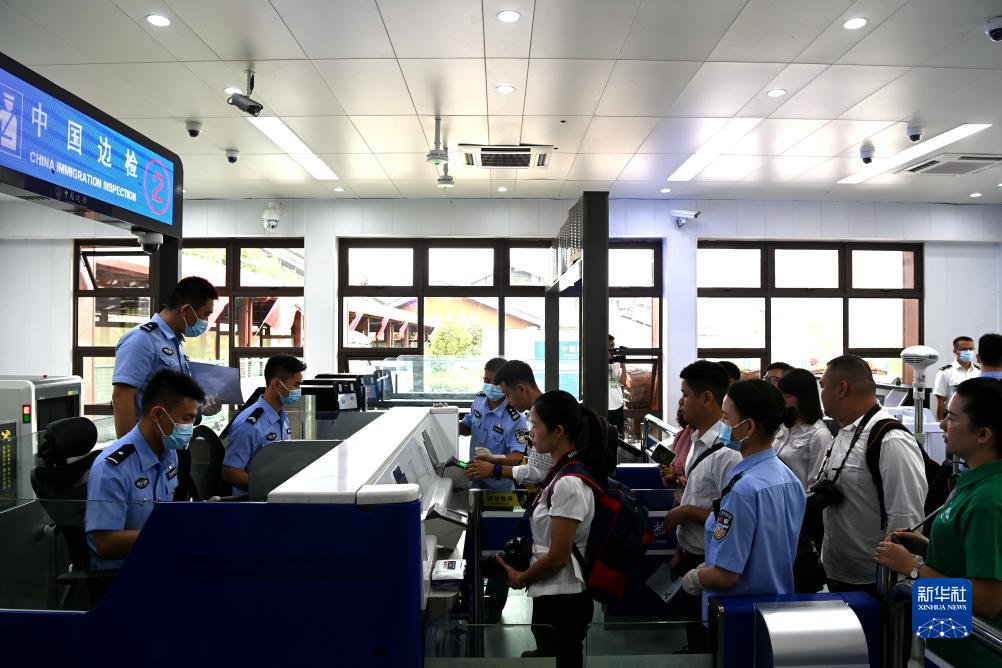 9月15日,在中越德天(板約)瀑布跨境旅游合作區,中國游客排隊通關(guān)出境。