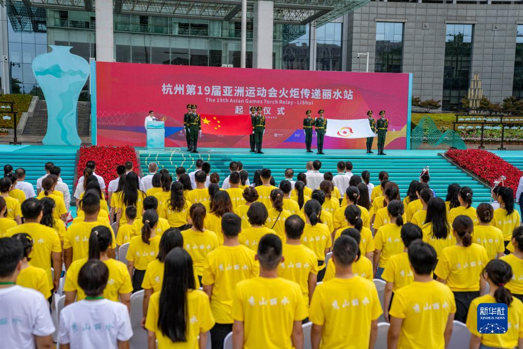 這是杭州亞運會(huì )火炬傳遞麗水站起跑儀式現場(chǎng)(9月16日攝)。
