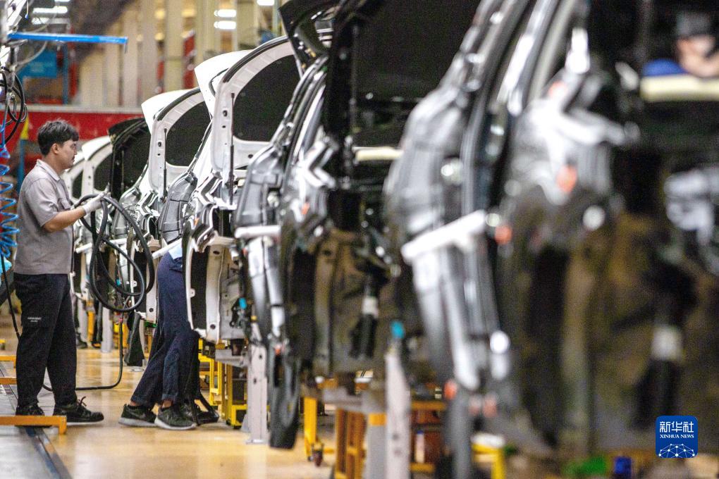 9月7日,在位于泰國春武里府的上汽正大公司汽車(chē)工廠(chǎng),工人在生產(chǎn)車(chē)間內工作。